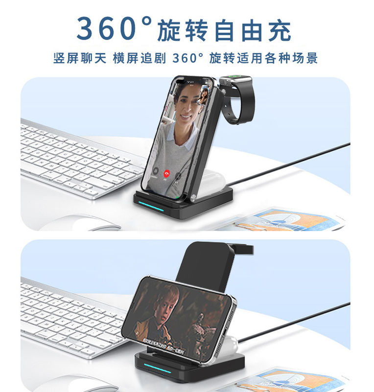 Он объединяет функции зарядки мобильных телефонов, наушников и часов, чтобы предоставить пользователям единое решение зарядки.
