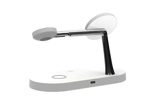 This versatile 3-in-1 travel and portable wireless charger with phone stand provides a complete charging solution for multiple devices, making it ideal for work, rest, and leisure.